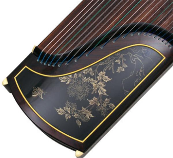紫檀從古至今就是典藏之佳品,通常很多藝術(shù)品是由紫檀木打造,在古代更是皇家御用的木材之一。敦煌古箏利用精品的紫檀精心打造作為古箏制作的材料,確為實木。密度和和質(zhì)量都偏高。琴體很敦實厚重。紫檀木所制作的箏碼每個牛骨都由制作琴師細細打磨仿佛測量。從工藝的書法中能襯托出中華上下五千年的文化底蘊,可謂技藝高超。